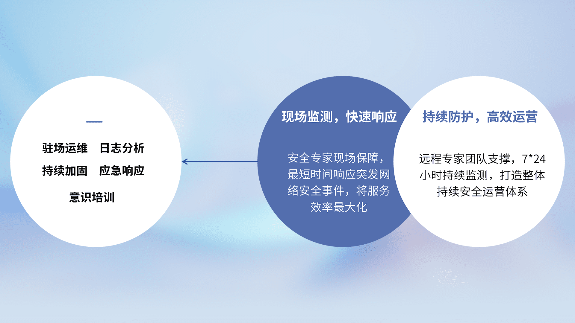 7X24小时持续监测安全事件,保持安全策略有效性,降低资产脆弱性风险,,精准拦截黑客攻击,,,减少被黑客利用的机会,,第一时间遏制,,,,降低损失。。。。